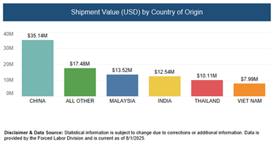 CBP UFLPA Enforcement Statistics: Shipment Value by Country, FY 2025
